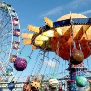 △ 以八大行星绕行太阳旋转为主题的辐射飞椅,座椅以各行星彩绘为造型,旋转时之离心力,如置身于银河中神秘氛围!