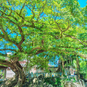 地图这颗有名的龙爪榕位于广西贺州市昭平县黄姚古镇内,因其气根形似龙爪而得名,至今已有500多年树龄,从正门进入沿右岔路寻去即可看见。古树是在石头中生长,与岩石紧紧相拥,根须无法充分伸展,故又名“石上榕”。