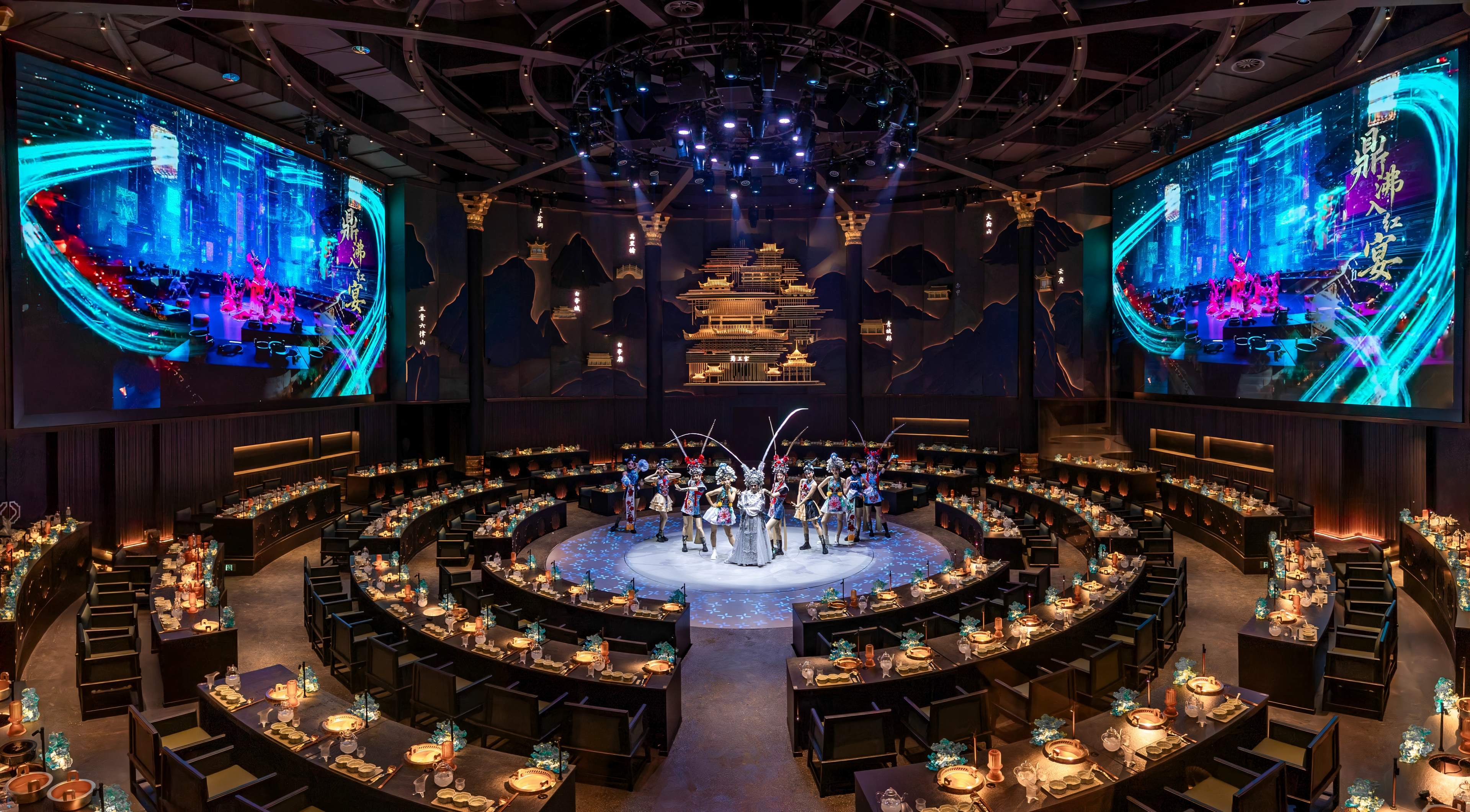 定制下排式无烟鼎沸系统悄然运作,智能控温如隐形侍宴倌。180°环景包厢群,更将“琉璃食器+专属演绎+古礼侍仪”三位一体的宴乐体验推向高潮,让空间本身成为可步入的时空折叠剧场。