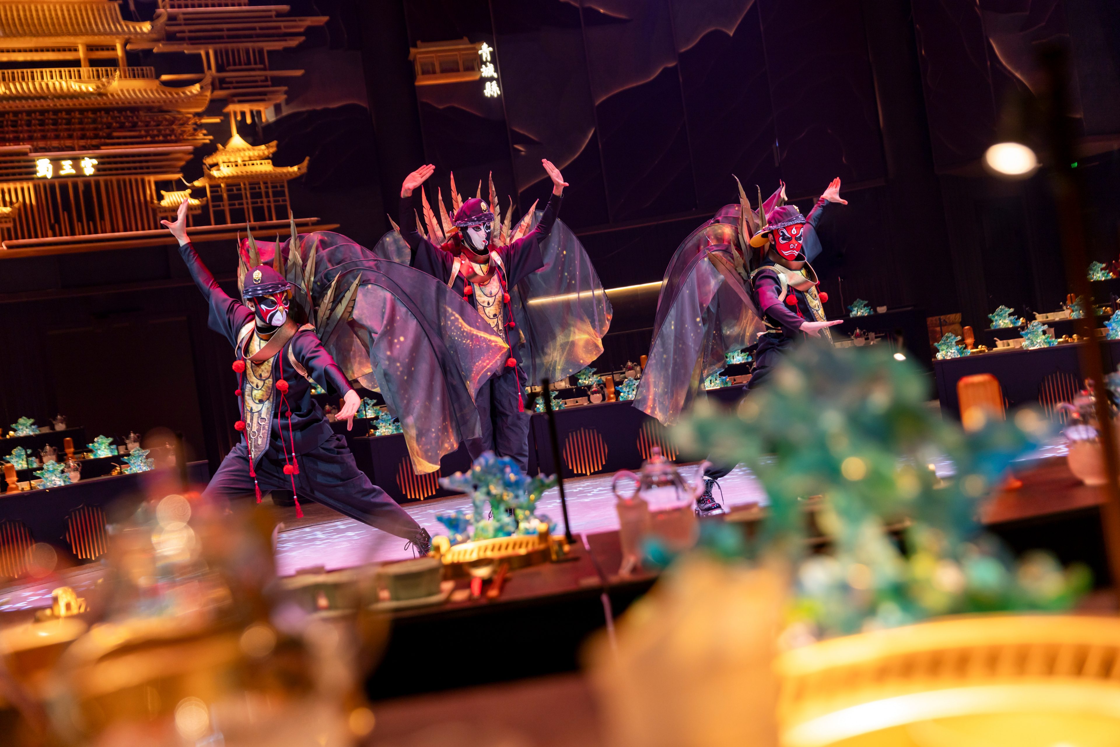 在红鼎艳中体验到的,远不止唇齿间的沸腾盛宴,更是折叠时光的精神原乡。于须臾片刻深度沉浸,让现代人遁入蜀韵千年的心灵栖所。在这里,火锅沸腾的声浪裹挟历史奔涌,茶馆的闲适与仙山的缥缈交织升腾,所有时空碎片终被熔铸为一席流动的“川味史诗”。几幕餐秀未终,心魂已纵览半部古蜀的盛世风华,方寸餐桌即成移动的历史舞台。