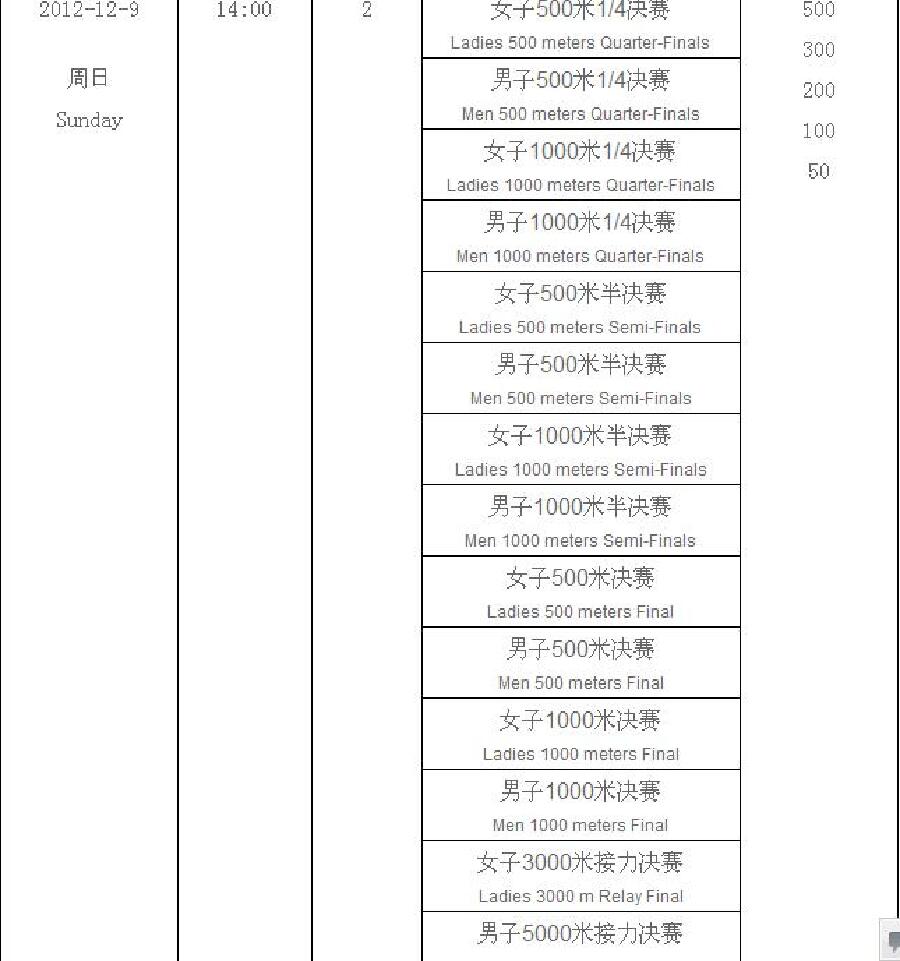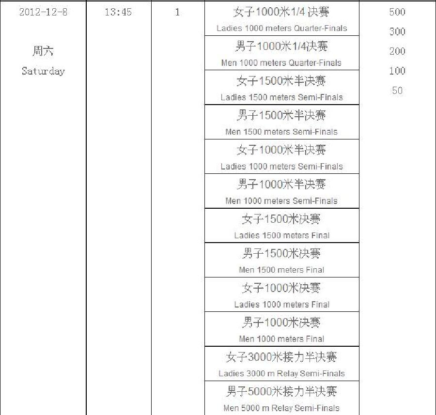 最终决定取决于4个单项比赛取得的积分(500米,1000米,1500米,3000米)。