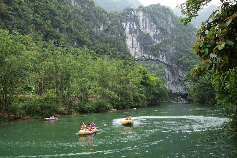 布柳河大峡谷是集奇山、秀水、仙桥、溶洞于一体的漂游观光景区,环境幽静,气候宜人,是八方游客最为向往的生态漂游观光圣地。
