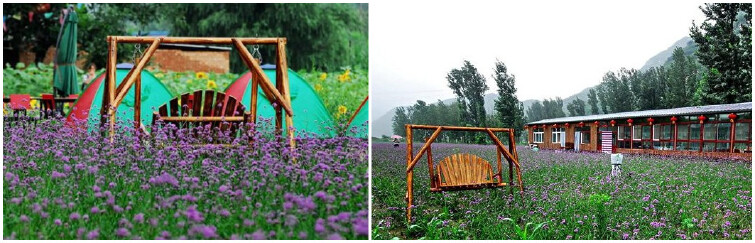 地图月牙湾位于京郊怀柔区九渡河镇境内,毗邻黄花城水长城。景区在一座山前的大片空地上,内有大片的薰衣草田和向日葵田,花田的旁边溪水淙淙,带着田园诗话般的惬意与清爽,很适合周末度假和赏玩,景区目前还处于试营业阶段。虽然有些设施还不是很完善,但还是非常有特色的,其中最值得推荐的莫过于地道农家菜体验和垂钓活动了。