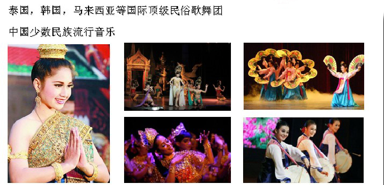 泰国,韩国,马来西亚等国际顶级民俗歌舞团,中国少数民族流行音乐