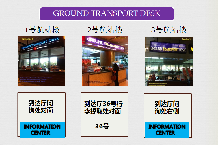 当您到达新加坡樟宜机场,请自行到相应候车柜台处凭护照验证姓名乘车: