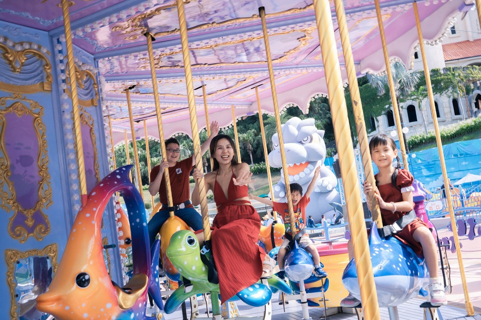 【十二大设施】这里有适合各年龄层的游乐设施,如天际缆车、黑胡子海盗船、海盗之旅、爱情摩天轮、海豚3D戏水池、碰碰船、小蓝鲸探险…等。