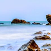 地图秦山岛呈狭长形,东西长1000米,宽200米,地理位置相当重要。它像一个英武的哨兵,屹立在连云港的西北方。从海头湾望西北,又像一个宝葫芦似的海岛浮荡在烟波浩淼间。