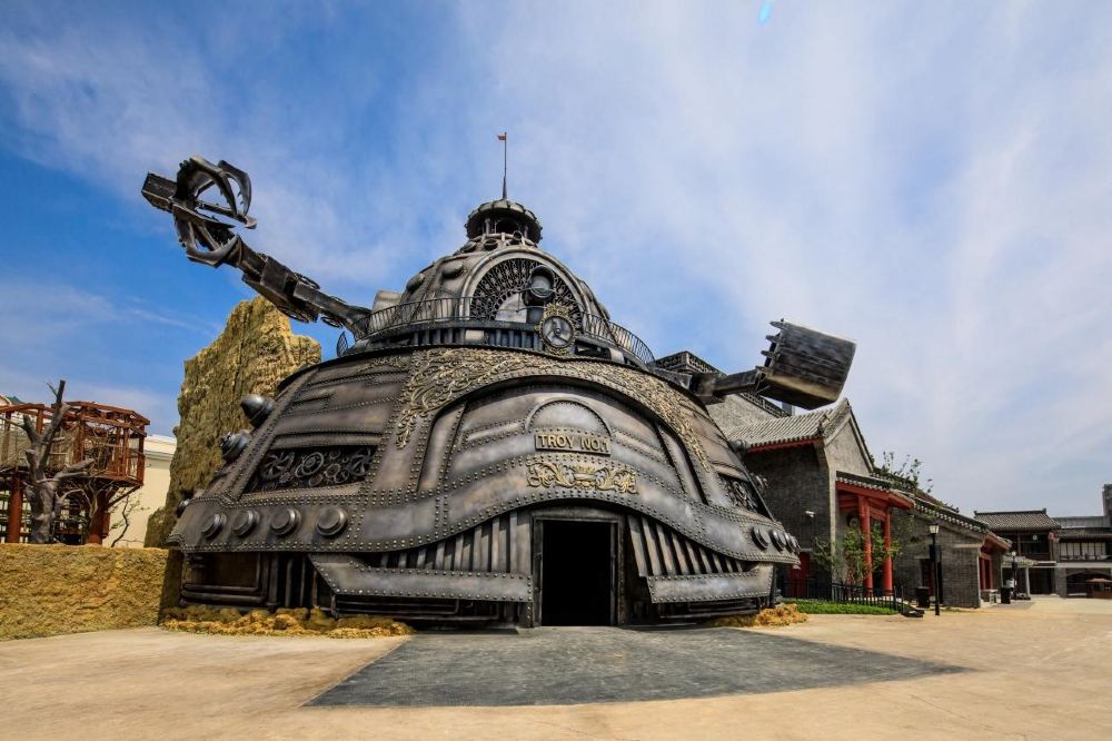 太极区位于全园中间地带,占地面积47581㎡。该区,从建筑、景观、游乐设备、演艺等方面全面呈现“武学怪咖”杨露禅从白痴成为一代宗师、从洋人手中拯救陈家沟的故事。全区主要分为陈家沟板块、机械制造总局板块、京城板块三个部分,游客可以深刻感受太极功夫和蒸汽朋克激烈碰撞下不一样的晚清风貌。