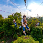 ▲迈佳探险乐园内的主要项目之一是长达450米、高达75米的高空滑索(MegaZip),能将游客以快每小时60公里的速度,从英比奥山滑到西乐索海滩的终点,游客可在享受高速和刺激的同时,能全程俯瞰丛林、海滩和大海的美景。