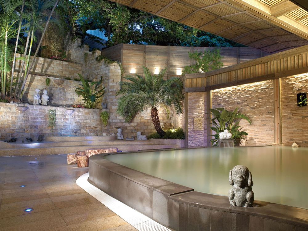 露天风吕包括9种SPA功能池,如冲击SPA、气泡浴、浮浴等等