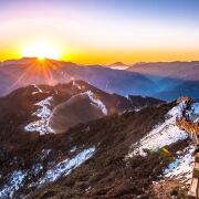 山中景色优美,能够看到森林、草原、峡谷和湖泊,幸运的话还能看到云海和日照金山的美景。