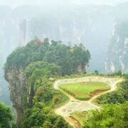 然而很少有游客会登山造访空中田园,一般都是在袁家界乘百龙天梯上至山顶,举目遥望此处,又是另一番体验了。