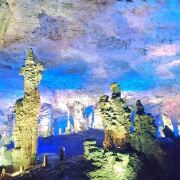 九天洞距市区70公里。九天洞百余处景点、景观堆珍叠玉,藏奇纳秀,神秘莫测,幽深无堰,享有“世界奇穴之冠”、“亚洲第一大洞”诸桂冠。洞分上、中、下三层,最下层低于地表面400多米。洞内36支洞交错相连,内有30余座大厅、10余座洞中山、6方千丘田、5座自生桥、3段阴河、3个天然湖、12瀑、3井等景。洞中石林密布,钟乳悬浮,岩浆铸成的各种精致景物婀娜多姿。洞中的石笋、石柱、石幔、石花、石人、石兽等千姿百态,不可名状,纷呈红黄绿白黑灰诸色,可谓五彩缤纷,琳琅满目。其中九星山玉柱、九天玄女宫和寿星宫三大奇观堪称景绝盖世。