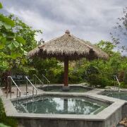 地图九昱汉水温泉旅游度假区项目位于汉中市勉县温泉镇郭家湾村的古温泉遗址,距县城8公里处,南靠巴山,北依汉水,西邻闻名遗迹的古战场定军山,环抱于汉江重要支流养家河,是陕南、川北、陇南、鄂西临街区域的天然古温泉,具有“陕南第一汤”的美誉而闻名遐迩。九昱汉水温泉旅游度假区项目以“一山、一水、一泉”为主线,按照温泉文化旅游度假区定位,以勉县天然古温泉为中心开展规划,以汉风民宿为建筑设计理念,集温泉洗浴、餐饮娱乐、住宿会议、康体养生养老、田园风光体验等多种旅游体验为一体。温泉区占地约46亩,份温泉接待区、大汉盛世区、锦绣汉川区、七星圣汤区、草庐天下区及汉宫秋月区六大分区,共有各类泡池56个。其中汉宫秋月区位贵宾区,共有各类室内汤池屋十四套,高级VIP豪华汤屋2套,为游客提供舒适和私密的休闲空间。