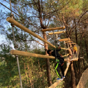 景区内的特色项目就是利用悬空桥梁、网道、步道、木桶、泰山秋千、飞狐索道和其他趣味环节等方式进行树木间的探险。 集冒险、运动、娱乐、挑战于一体的户外运动项目,通过爬、滑、游、跨、跳、飞等动作越过所有障碍,到达终点。 在整个运动中,汇集了高空、速度、力量、毅力等户外探险所需要的元素,为参与者提供了感官上的刺激.也是释放压力,坚韧意志,又能锻炼领身体的户外运动。 由家长与小朋友共同完成一系列的障碍环节。