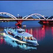 地图曹娥江游船可提供水上观光、餐饮、宴会、会务、婚礼、研学、广告冠名、包船等服务。让您在乘船游览上虞曹娥江畔璀璨风格的同时,体验优质服务。以曹娥江游船码头为起点,开启“漫游娥江”水上游线产品,带给您美妙的休闲时光。