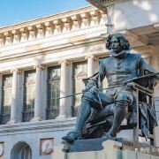 △ 博物馆主体部分是维亚努埃瓦宫(Palacio de Villanueva),建于1785年,是新古典主义建筑的典范。正立面由希腊式的白色圆柱支撑,放有提笔沉思的委拉斯凯兹的青铜雕像,正对着普拉多大道。