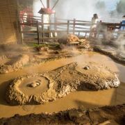 别府地狱是别府地区有名的温泉,被日本人票选为西日本第一温泉,其中受欢迎的当属八大地狱温泉。八大地狱温泉有海地狱、鬼石坊主地狱、山地狱、灶地狱、鬼山地狱、白池地狱、血池地狱和龙卷地狱。海地狱是其中大的一个,而有特色的一个则是血池地狱。它以“赤汤泉”闻名,泉水泛着血红色,被日本佛教徒认为是来自幽冥地狱中的激流。同样让人过目难忘的还有鬼山地狱,它又被称为“鳄鱼地狱”,里面的鳄鱼养殖场现在养着三种约百头鳄鱼。冬天的夜里饲养员每三小时巡逻一次,监视是否有鳄鱼从温泉中爬出。除此之外,白池地狱园里饲养的食人鱼也让闻之一惊,不过它吸引人的还是“变色水“,温泉里喷出的水重新落回池子时由无色透明变成青白色。地狱是日本古代对温泉的称呼,当地为了突出其温泉乡的历史悠久而保留了这个称呼。之所以把温泉称为“地狱”,是因为经过火山喷发后的地方烟雾腾腾、寸草不生,让人心生恐惧,与佛教中描绘的地狱场景极为相似。在别府,温泉水可以拿来制成罐装饮用汽水,免费的蒸气则直接被用来煮饭。当地人更是利用天然地热制作出一道有名的乡土料理——地狱蒸,烹饪方法极为简单,就是将新鲜的海鲜和蔬菜用高达100度的温泉蒸汽来蒸熟,附近的餐厅大多提供这种自助式烹饪的地狱蒸。