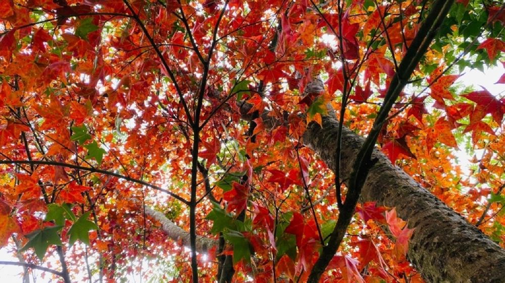 秋天里浓浓的红色晕染整个园区
