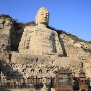 地图蒙山大佛,又名西山大佛,位于山西省太原市西南20余公里处的蒙山景区,始建于北齐天保年间,距今已有约1500年的历史,是中国北朝时期大体量的摩崖大佛和佛阁。原是蒙山开化寺后的摩崖佛像。唐高祖李渊、唐高宗李治与皇后武则天、后唐武皇帝李克用、后汉高祖刘知远都曾来此礼佛。元朝末年,蒙山大佛被毁,1980年的太原市地名普查中,蒙山大佛被重新发现,但佛头已不知去向,现在的大佛头部为后人新凿的。