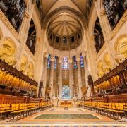 地图纽约圣约翰神明大教堂是圣公会纽约教区的主教座堂,位于曼哈顿晨边高地的阿姆斯特丹大道1047号,是纽约有名的游览胜地,号称世界较大的圣公会教堂、.此教座堂于1888年设计完成,1892年开工建设。建设过程中,经历风格的改变和两次世界大战的中断,至今尚未完成,仍在持续建造中。1909年座堂圆顶完工后,原本设想的拜占庭兼罗马式建筑设计被换成法国哥特式建筑风格,因此座堂的中殿以及半圆形的拱顶房间为哥特式,而座堂圆顶下的十字点仍保留罗马式建筑风格。