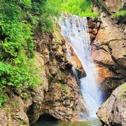 地图玉龙溪大峡谷风景区面积三千余亩,一条溪流贯穿整个景区,溪水流向行如巨龙,水质清澈色如碧玉,因此得名玉龙溪。由于特殊的地理条件,玉龙溪大峡谷风景区内植被旺盛,空气清新沁人心脾。每年五一左右梨花、杏花、樱桃花、映山红...百花齐放,是踏青赏花的观赏期。玉龙溪水在峡谷中奔流直下,把峡谷切割滴凿成十余个深潭,其中大一个深潭是悬挂在夹窄而又陡峭的岩壁上,潭面有十余平方米呈穴壮,隆隆的涛声如同千军万马驰骋奔腾,水雾形成的彩虹横跨峡谷两岸。每至初春,玉龙溪大峡谷风景区两岸映山红争奇斗艳,从而吸引无数游人前来观景。