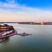 地图柳叶湖旅游度假区位于古城常德东北,是湖南省大型的山、水、城三位一体的生态型城市旅游休闲度假区,因湖的形状像柳叶而得名,白鹤山、花山、太阳山环绕湖北部。其中白鹤山很早以前就是白鹤栖息之地,每年5月-9月,成千上万只白鹤与白鹭在蓝天碧水间翩翩起舞,为这里增加了奇丽的色彩。这里山环水绕,流霞飞烟,景色宜人,碧水与长天一色,青山和古城相映。湖边的太阳山,层峦叠嶂,松竹青翠,清溪蜿蜒,泉水潺潺。西南的花山,山虽不高,却十分秀丽,每逢春天,满山杜鹃花,姹紫嫣红,一片鲜亮世界。刘海砍樵的美丽传说就发生在这里。这里湖水域辽阔、湖底平坦,是理想的水上运动比赛场所,已建成了具有国际水准的水上赛场;成功地举办了湖南省八运会水上比赛、第八届亚洲皮划艇锦标赛、首届中国短道汽车拉力赛等一系列重大国际国内赛事,被国际国内人士誉为“世界上最佳的天然水上运动场所之一”、“城市拥抱的水上天堂”。