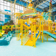 舟山保利开元森泊度假乐园是开元森泊一站式海滨度假综合体,乐园游乐设施丰富,有1600㎡的奇妙幻想岛儿童乐园,有近7500㎡的惊险又刺激的室内恒温水乐园,大型户外陆乐园的空中追逐、星舰计划等游玩项目让您玩到不亦乐乎,还拥有2000㎡的集电玩、互动影院、卡丁车于一身的沉浸式潮玩聚集地头号玩家,为宾客带来充满创造力、冒险和刺激的乐趣! 幻想岛儿童乐园:整体乐园设计灵感来源于神秘的海洋,孩子在这里通过各种游戏、 冒险,探索发现海洋里的故事。主要适合2-10岁的儿童游玩,是集游乐、运动、益智、健身等功能为一体的综合性乐园。儿童乐园分为服务区、换鞋区、手工区、蹦床区、低幼区、球池区等30余项游乐项目。室内恒温水乐园:室内水乐园全年无休,凉爽不晒,四季恒温。巨型透明穹顶笼罩之下的室内水上乐园,全年30℃恒温,彻底摆脱四季晴雨束缚,打造波利尼亚风情阳光海岛。超级大滑道组合、激流河、造浪池、水上互动攀岩池等13项大型水上游乐设备共30项水上游乐项目,充分满足游客多种需求。 星际空间:其中包含过山车、空中追逐、青蛙跳、水上飞艇项目,适全年龄段客人游玩。反物质行动(回飞棒过山车)是陆乐园一个非常醒目的大型室外体验项目,该项目轨道360度扭曲、曲折回环的刺激体验,一起感受失重快感。全程285米,给您极速飞跃的震撼体验,与巨龙一起腾飞,享受摇摆与震动的呼啸之旅。每场可容纳28位游客同时体验,如果感觉自己胆量还可以那就不要错过!追踪者号(空中追逐)位于过山车对面,是陆乐园另一大型设备,每场乘客人数可容纳36人,运行高度高达38.5m。大家乘坐双人浪漫秋千,在高空中感受上下飞旋的快乐。星际阶梯(青蛙跳)是小宝宝的专属,不同于过山车、高空飞翔是大宝宝们的追捧项目,小朋友坐上座椅,然后模拟飞行器一飞冲天,享受独属孩子们的惊险刺激。每场6位小朋友可同时体验,挑战人生第一架跳楼机!星舰计划(水上飞艇)是适合全年龄段玩的水上休闲项目,置身于船舱之中,飞行之旅随即开始,在不断地俯冲、旋转、追逐中,享受飞行的乐趣。