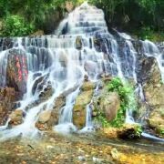 地图凤凰谷景区谷长5公里,谷内山水环抱,山涧泉潭,曲径通幽,溪水潺潺,深潭幽谷,飞瀑壮观,奇石遍布,青藤野果,四季鸟语花香,翠竹幽幽,水体清洁,负氧离子含量较高。谷内生长有国家保护植物金花茶及珍贵动植物,还有国家二级保护植物金毛狗和国家二级保护动物金钱龟及穿山甲等。