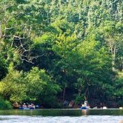 地图南腊河康养度假营地,位于勐腊县城东郊7公里的曼龙勒傣族特色村寨边。是西双版纳勐腊县河马旅游开发有限公司投资7500万元倾力打造的以趣味性、体验性、刺激性为主的水上运动和户外运动项目,包括皮划艇漂流、轮胎漂流、自由跳水、水上跳床、水中攀岩、河里射鱼、水上步行球、篮球、气排球、乒乓球、羽毛球、台球、大型秋千等。