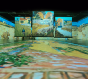 地图“永远的梵高” 沉浸式光影大展 通过空间影像叙事将梵高2000多幅 作品元素与立体空间相结合,重组为数字化动态影像空间展演 ,以梵高生平为主线,重现梵高艺术 经典,致敬永远的梵高。科技与艺术 的完美结合,每一帧画面,每一个笔 触都展现了梵高极具表现力的色彩表 达和个人情绪的感染力。梵高的一生 短暂却充满传奇色彩,展演从视听角度将梵高的作品进行解构, 从《吃土豆的人》 (1885) 《向日葵》 (1888)、《星月夜 (1889)到《麦田群鸦》 (1890)等名作。 展演时长42分钟,将梵高生平创作分为四个阶段:由初学绘 画到巴黎时期的艺术转折,再到阿尔勒时期绘画风格的转变。最后,梵高在创作晚期其绘画风格强烈冲击力的视觉提升 每一个人都带着自己的感触而来,自由地行走在展演中,沉 浸在梵高的艺术作品里。梵高的生命是短暂的,但是梵高对世人 的影响却是永恒的。