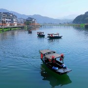 • 乘传统乌篷船摇橹穿行,两岸马头墙倒映碧波,船头灯笼随风轻摆,船行处皆是《富春山居图》的生动再现。