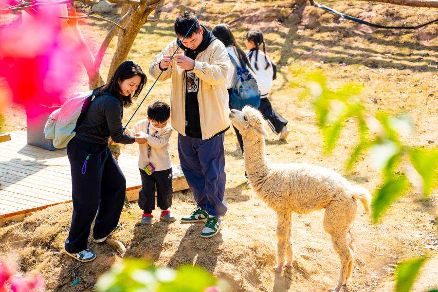 △浮生一憩牧场:碧草清溪,溪畔树影,羊驼与山羊闲庭信步,还可在此围炉煮茶,偷得浮生半日闲!