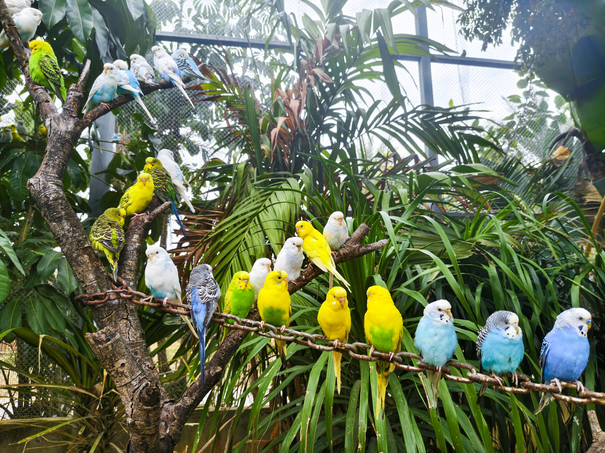 △百鸟乐园:虎皮鹦鹉花色缤纷,啼鸣啁啾;孔雀羽毛华丽,昂首挺胸;凤头鸭、赤麻鸭、柯尔鸭们摇摇晃晃,脚步可爱~这里草木繁茂,是鸟类的乐园!