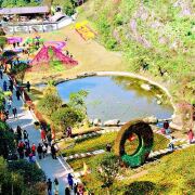 地图古郡·花果溪位于四川省乐山市犍为(Qiánwéi)县城东下渡乡白杨村,利用山形地貌和区位优势,以四季花展、婚庆文创、农旅观光为创意,打造集餐饮、娱乐、休闲、度假、观光为一体的农旅融合乡村度假近郊游。目前已经建成有犍为长城、水帘洞、禅修台、五彩滑道、娱乐设施、观赏花卉树木数万余株、荷花梯田、桃园、兰园、樱花林、果园、放生池、奇石园、户外拓展基地、桃花源瀑布、停车场、热气球和各种小景观等。