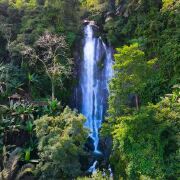 景区内闻名遐迩的百花瀑布落差超过300米,集奇、秀、雄、美为一身。景区保留着完整的原生态,少数民族黎苗风情浓郁。景区雨林自然景观丰富,菩提秘境、爱情谷、瀑布栈道等游览区域分布着百花天池、天琴树、莲花石等雨林奇观。