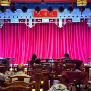 场馆采用古风装修风格,配中式木雕桌椅、红灯笼及雕花门窗,营造传统茶馆氛围。