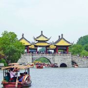 坐在船上,瘦西湖景色如山水画卷般呈现在眼前,沿途还可以看到绿杨村、西园曲水、小金山、钓鱼台等美丽景色。