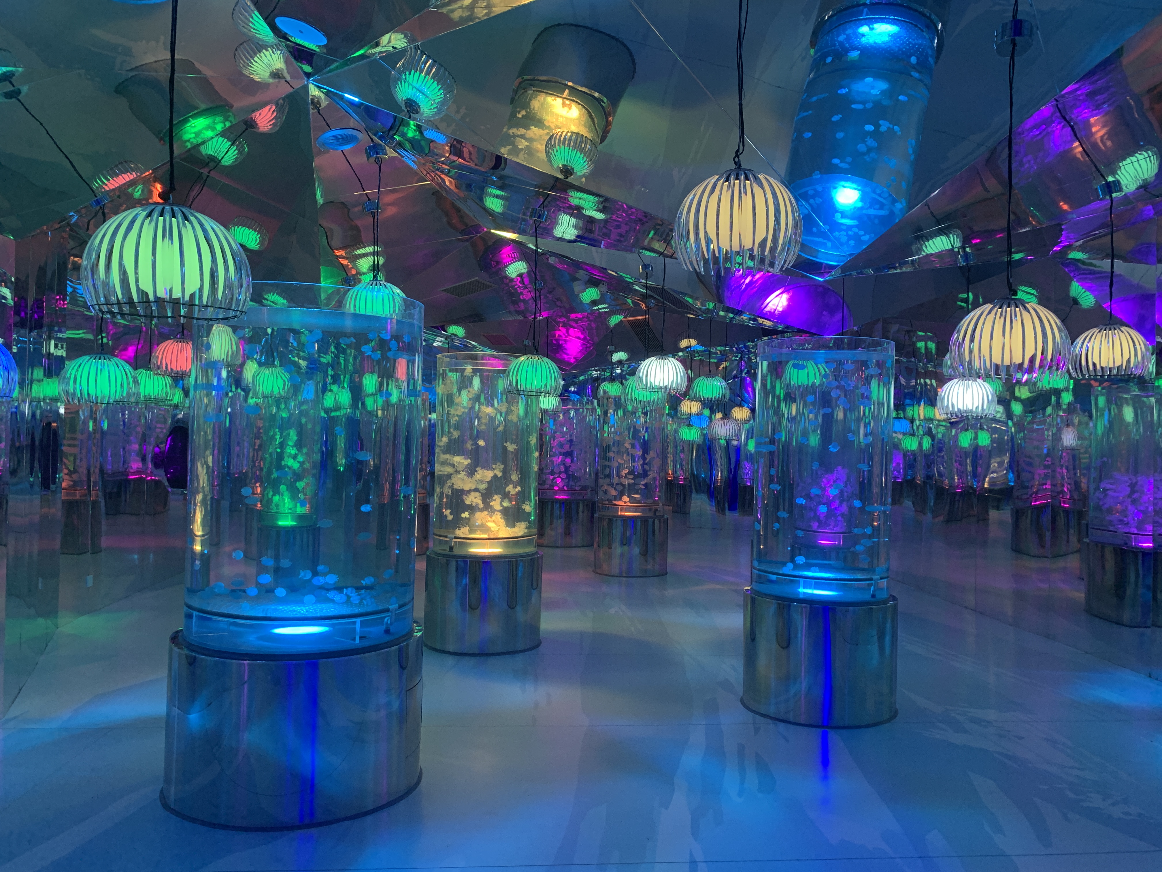 第二层主要是赤月水母、澳洲斑点水母、炮弹水母、大西洋水母、巴布亚硝水母等各类水母的生物展示。