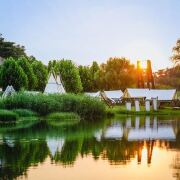 地图忆江南度假区坐拥郑州市北部山水资源,是以自然美学、自然康养、自然教育为核心产品,集湿地、温泉、森系、田园四大主题为一体的度假体验区。北临九曲黄河、楚河汉界和炎黄二帝风景区,紧靠万亩黄河湿地,绿色山林幕布每天可释放氧气300多吨,堪称天然氧吧。景区依托黄河生态保护示范区天然优势,依山傍水,亲近自然,融汇中西温泉文化,将湿地美学、森林艺术、田园东篱、森林悠居美好生活真实呈现给中原大地。交通区位优越,紧挨连霍高速与郑云高速郑州市三大出入口,距离市中心仅20分钟车程。忆江南度假区,属于河南区域内的自然艺术体验度假区。