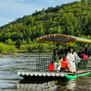 地图伊春市东升岛旅游度假村特色竹筏漂流全长15公里,漂流时长2小时。舟行碧波上,人在画中游!坐于竹筏之上,之间两岸青山环抱,目之千里,皆可入画。碧波荡漾,随舟而激起层层涟漪,在山河画卷里享受漫时光!