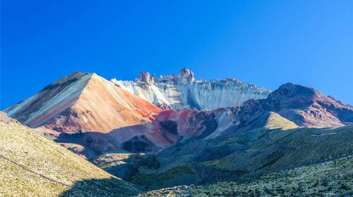 它是玻利维亚波多西省的一座休眠火山,矗立在乌尤尼盐湖的一旁。于是,在探访盐湖的奇妙景之余,你大可以来瞅一眼这座休眠火山的容颜,定不负此行。在这里,你能看到多彩的条形土壤,更有机会一睹木乃伊的真容。而在火山附近的Chantani小镇,你还可以进入到小型博物馆和户外雕塑花园中游走一番,小瞥当地的风土人情,自是一番别样的体验。