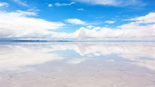 无边沼泽,天空之镜。乌尤尼盐沼是一个美到让人心醉的地方。它是由4万年前的巨大湖泊干涸之后形成的,而逢至雨季,硬邦邦的盐沼表面就会形成光溜溜儿的镜面。随着阳光倾泻而下,蓝天白云倒映在无边盐沼的表面,光影在盐沼的表面漂移变幻,煞是迷人。当夜幕降临之时,满天星宿闪闪发亮,站在这广袤的空地上仰望夜空,自是另一番醉人的体验。查看目的地攻略