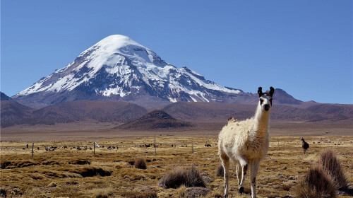 萨哈马火山是玻利维亚*的山峰,坐落在拉巴斯的南部。山顶终年积雪,而山脚却是一派勃勃的生机。这里有着全世界海拔*的“森林”,矮墩墩的小树虽没有遮天蔽日那股磅礴的气势,但着实萌萌的很讨喜。在这片广袤的土地上来一次步行越野,自然是十分地畅快。而途中,自火山向西走上一个半钟头,你便能遇见间歇热水喷泉,这里也值得你驻足停留。