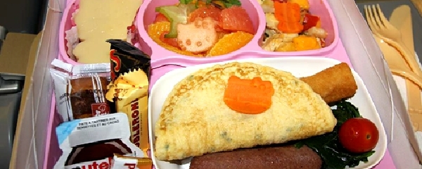 Hello Kitty的忠粉儿大概都知道中国台湾长荣航空有凯蒂猫主题的航班。自打乘客领取Hello Kitty彩绘机的登机牌开始,Kitty就无处不在,行李牌、椅背枕巾、枕头、纸巾、杯子和香皂统统都印有Kitty萌萌的小脸儿。哦,忘了说,连机餐也是由空姐穿着Hello Kitty围裙端上来的。而定睛一看,你会发现机餐每一个原料都被切出三丽鸥明星人物的样子,诸如Hello Kitty 形状的黄油块、