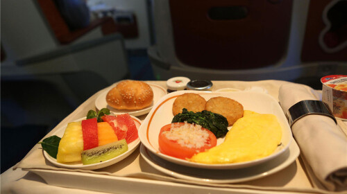 国泰航空的饮食服务公司面积有五个足球场那么大,每天能做出八万多份机餐。而为了迎合不同乘客的饮食习惯,国泰航空提供中、西菜式之余,还安排了特别餐厨房部门烹饪美食。你以为这样就完了?为了增加乘客的新鲜感,国泰航空每两至三年会更换一次菜单。而不论是商务舱还是经济舱,乘客都能在餐后得到一份中国茶,满满都是诚意的说。