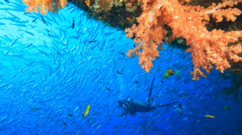 如果不说,你一定想不到美丽的帕劳小岛曾经历经硝烟的战争。二战时期日军的Chuyo号船因美军的轰炸而沉入海中,如今却成为帕劳必去的潜水景点。来到沉船的海面,依稀可以看见下水斑驳的沉船巨大的身影,让人忍不住想下去一探究竟。经过岁月的洗礼,船身上已长满珊瑚,无数可爱的鱼儿聚生,这与破落的船身形成强烈的对比,让人在游玩的同时也有着些许唏嘘、些许思考。
