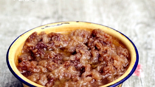 所谓人不可貌相,海水不可斗量,这在美食界也是同样的法则呢!甑糕外表不咋样,但是味道可是没话说。甑是一种古代流传至今的蒸器,用它制成的糕点就是甑糕,它是由红枣、糯米、葡萄干制成的。黏糊糊的甑糕红白相间,糯米的细腻口感配上枣泥的香甜滋味,软糯糯的,真真是*的~
