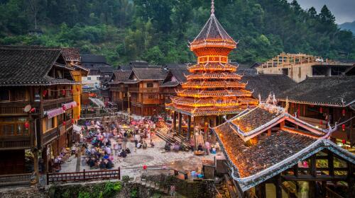 作为国家4A级景区,黎平肇兴侗寨处于两座山脉之间的谷地,这里的建筑极具民族风味,村寨呈船形状,中间一条小溪缓缓而流。不得不去的是钟鼓楼和风雨桥,宏伟壮观景色秀丽。在这里大人们悠闲的做活儿,孩子们欢乐的嬉戏,别样的侗家风情给人一种淳朴宁静的感觉。另外他们亲手做的手工艺品也是值得购买的。查看目的地攻略