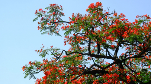 杳杳灵凤,绵绵长归。悠悠我思,永与愿违——如火的凤凰花,开得热烈,开得绚烂,红得丝毫不作伪,豪迈的色泽直接美到了人们的内心深处。不是浅红,不是粉红,不是深红,厦门大学的凤凰花就是直白的大红色,不含杂质地绽放在茂盛的树荫间,往往令人驻足欣赏。凤凰花盛开在夏季,直面烈阳,愈发显得浓烈,只是,你有勇气去亲近她吗?查看目的地攻略